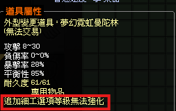 該道具只能應用1次於同一件裝備。